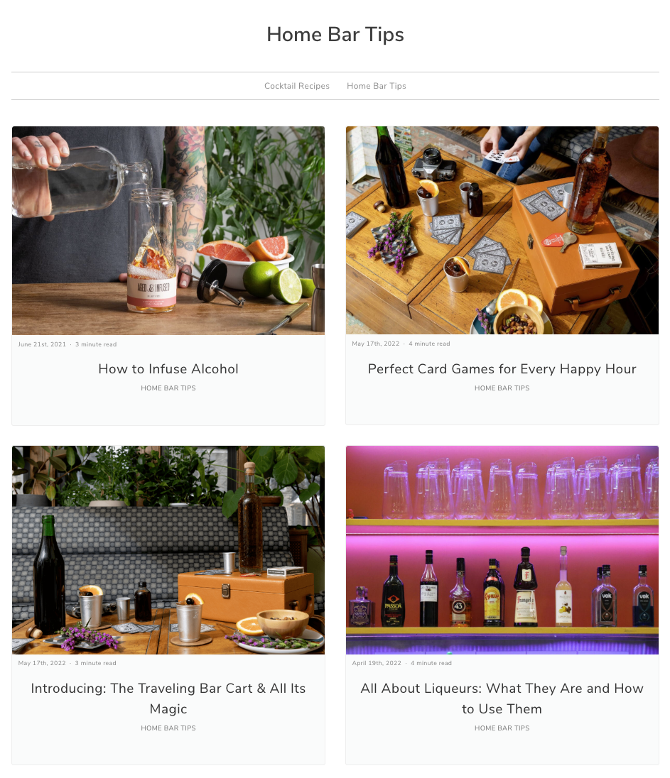 Worked on: social media and blog content calendars, social media and blog copywriting, cocktail recipe writing